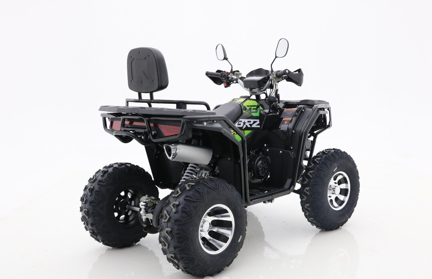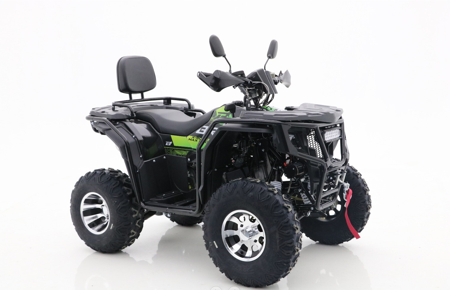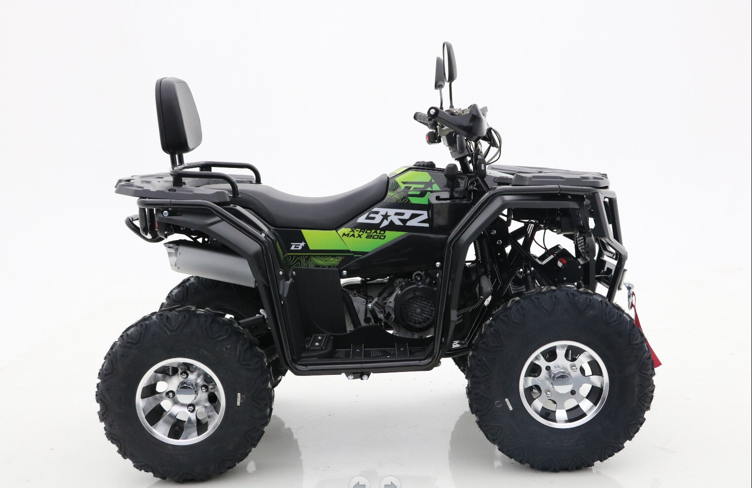 Квадроцикл BRZ X-Road MAX 200 Green — современный утилитарный квадроцикл со спортивным характером. Квадроцикл обладает всем необходимым для увлекательных путешествий и активного отдыха: двухместное сиденье с удобной спинкой пассажира, крепкие багажники спереди и сзади, зеркала, защита рук, фаркоп, лебедка, светодиодная оптика + светодиодная «люстра», LCD-приборная панель — невероятный набор опций для вашего комфорта. Литые диски и стремительный спортивный дизайн придают квадроциклу BRZ X-Road MAX 200 Green невероятный стиль.