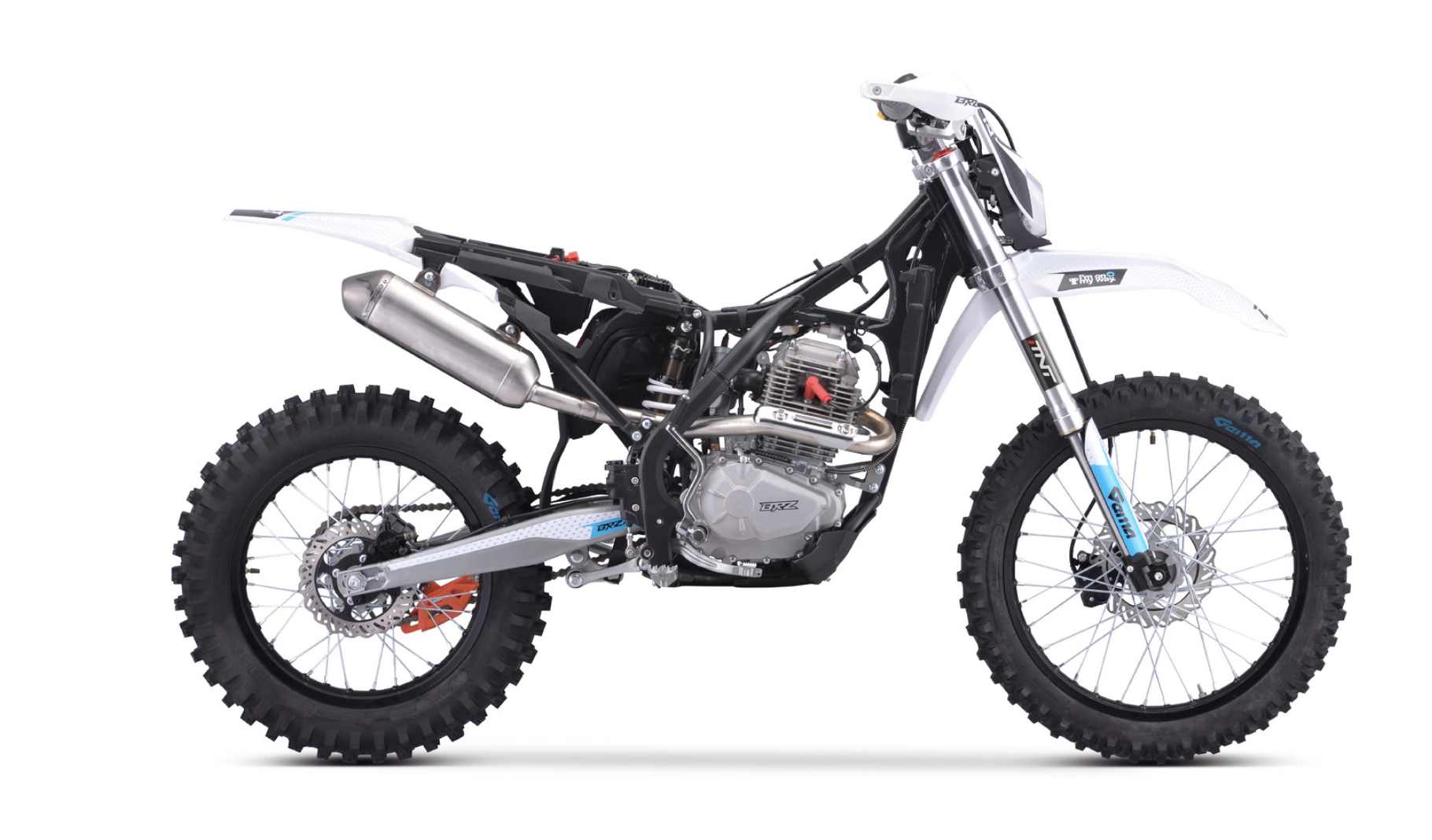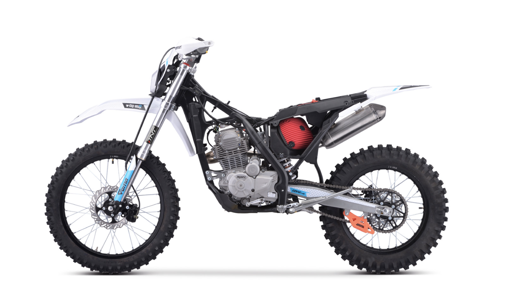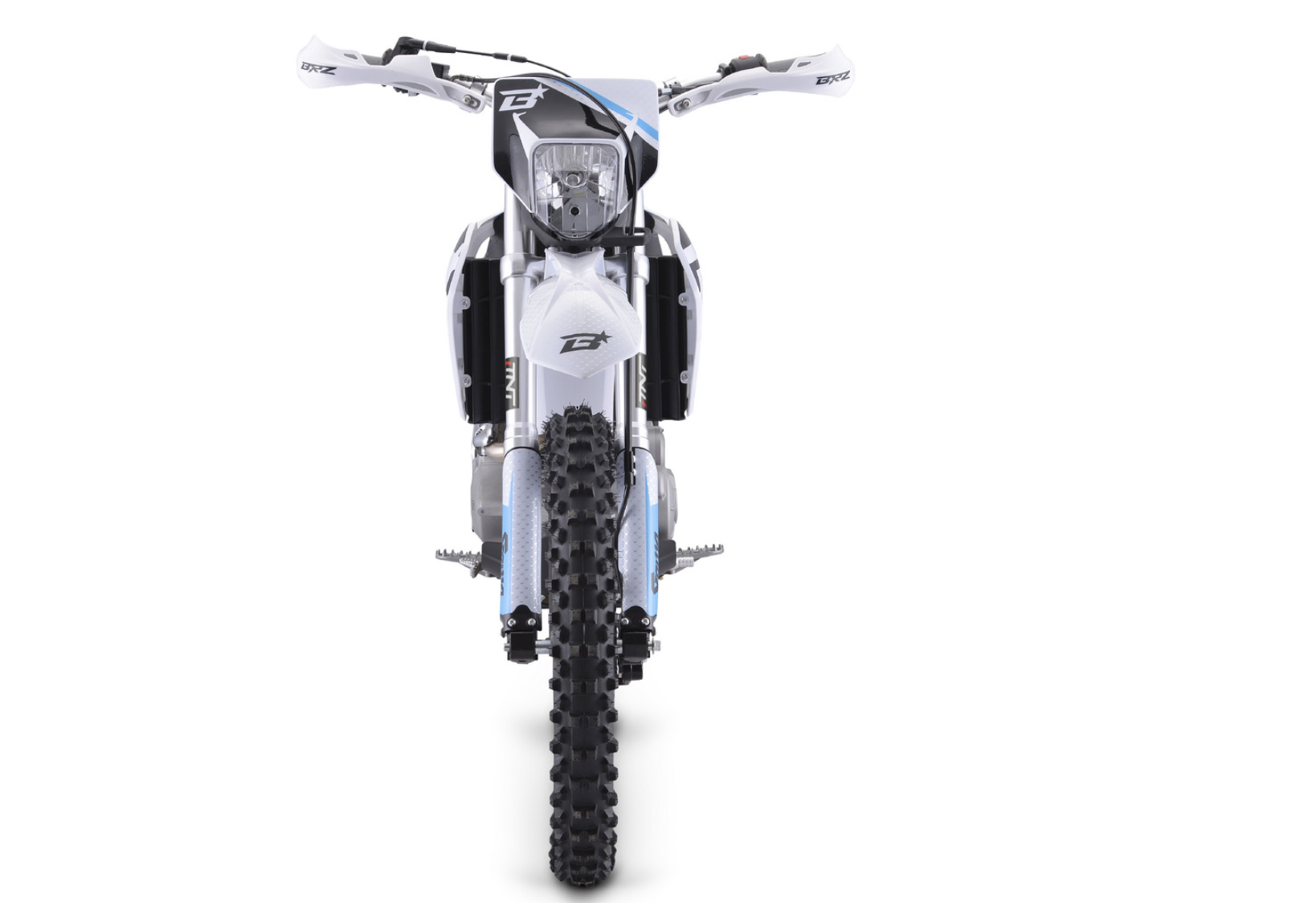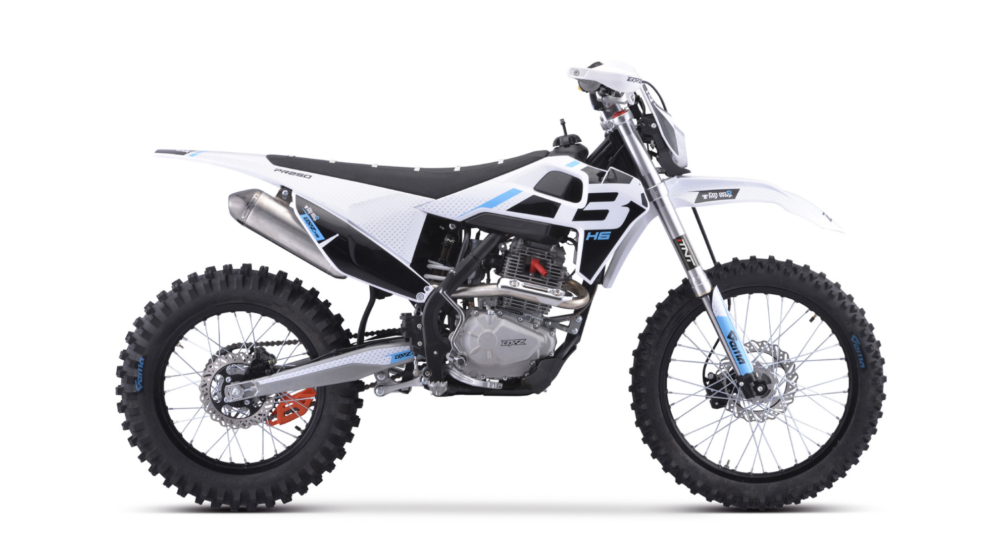BRZ H6 PR250 21/18 - ваш пропуск в мир приключений. Надежный двигатель ZONGSHEN ZS172FMM-5A с баланс.валом в паре с карбюратором Nibbi Racing PE30 выдает превосходные мощность и тягу. Короткоходная ручка газа обеспечивает мгновенную реакцию. Воздушное охлаждение обеспечивает надежность и простоту эксплуатации, а пластик в стиле Husqvarna подчеркивает его стильный вид. BRZ H6 PR250 21/18 - это ваш верный спутник в мире эндуро. Он обладает всем необходимым, чтобы вы могли покорять бездорожье с уверенностью: Счетчик моточасов для контроля состояния двигателя, защита рычагов. Мягкая резина Gema для уверенного сцепления с любой поверхностью. Небесно-голубой цвет придает мотоциклу легкость и свежесть. С BRZ H6 PR250 21/18 вы ощутите свободу и драйв!
