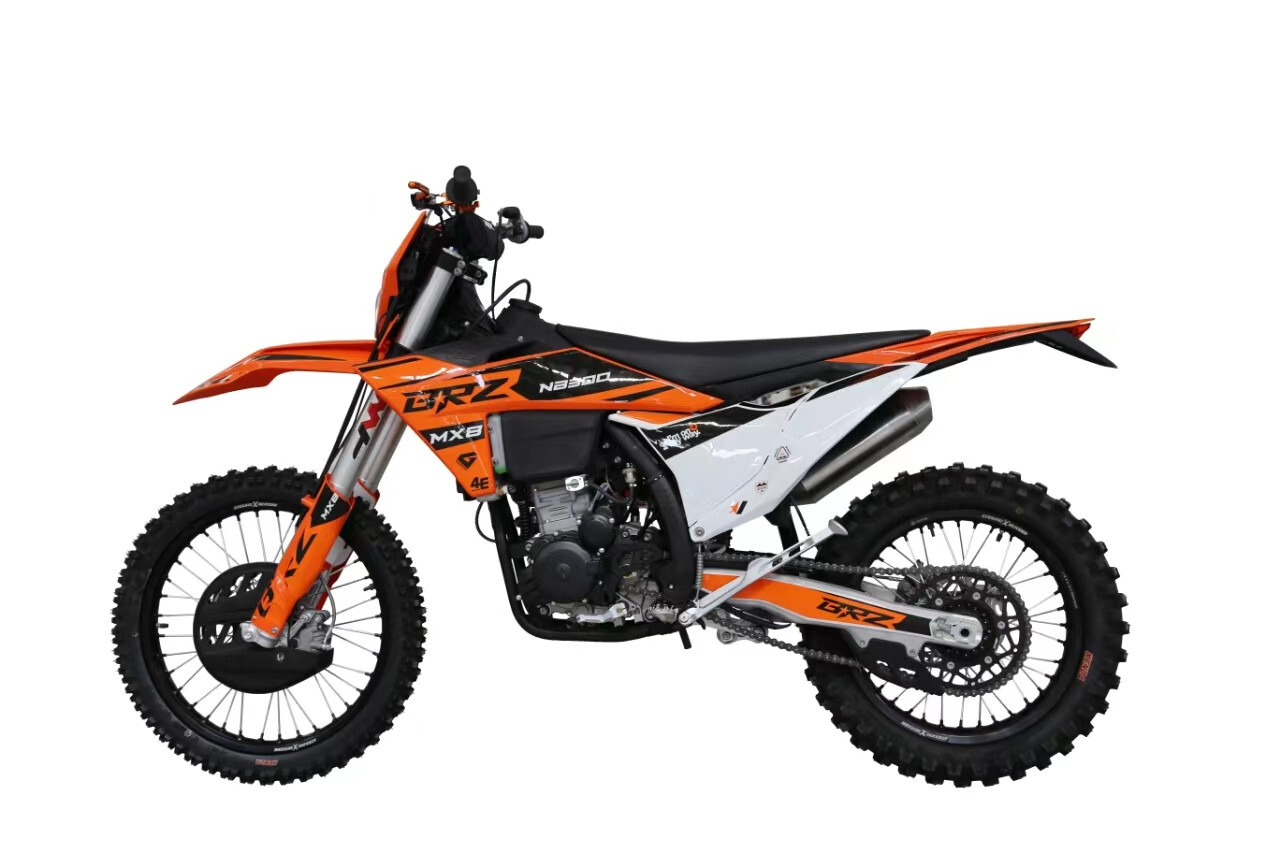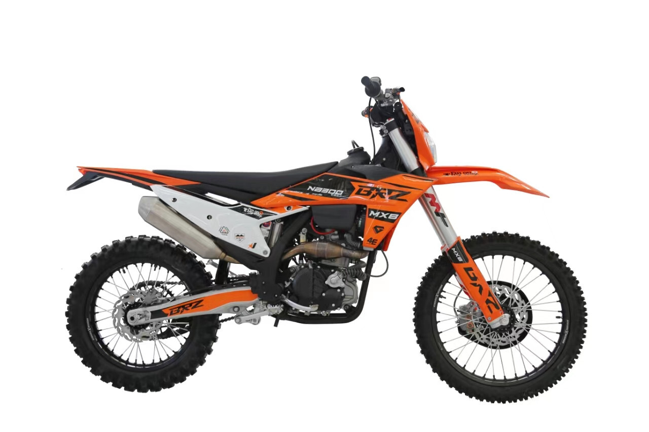 Мотоцикл BRZ MX8 NB300 24 - современный эндуро жидкостного охлаждения. На мотоцикл установлен очень тяговитый косоголовый мотор Zongshen ZS174MN-5A объемом 300 см3. Работает двигатель в паре с карбюратором Nibbi Racing PWK 34, что дает отличное раскрытие мощностного потенциала.