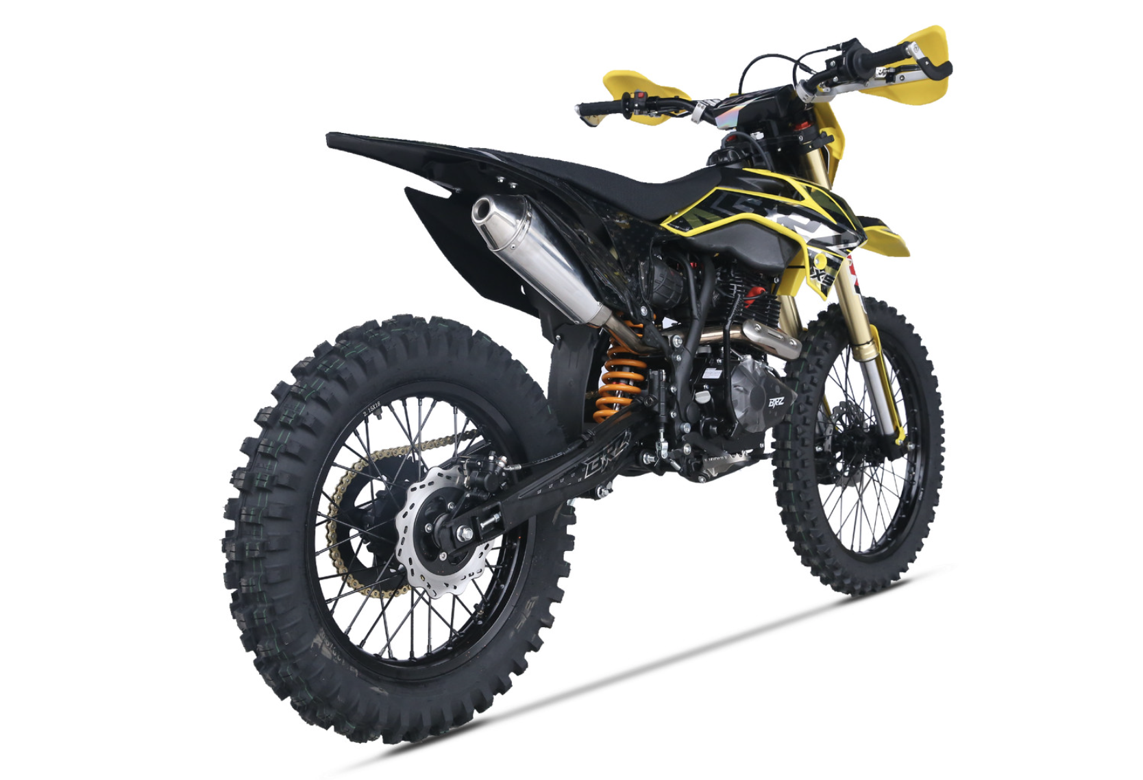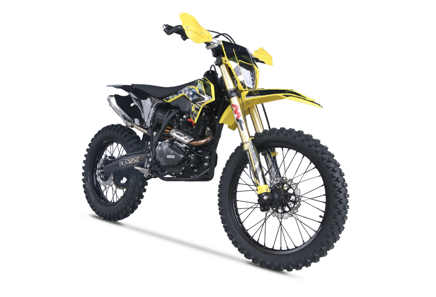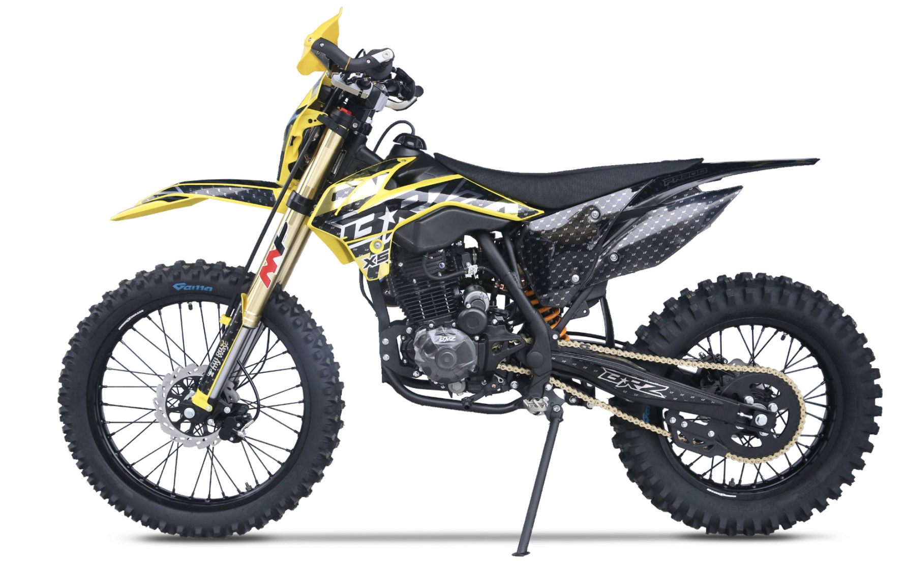 Мотоцикл BRZ X5 PR300 YELLOW - живая легенда, хит продаж. Это среднеразмерный мотоцикл с мотором Zongshen ZS172FMM-5 с баланс. валом и кубатурой 300 см3. Двигатель работает в паре с карбюратором NIBBI Racing Black PE30, который отлично раскрывает его потенциал. BRZ X5 PR300 YELLOW получил регулируемую вилку MNT, зеркало 41 мм. Задний амортизатор также имеет необходимые регулировки. С завода BRZ X5 PR300 YELLOW оснащен отличной резиной Gema, спереди F-Enduro 90/90 - 21, сзади "жирнющая" мягкая XPlorer 754 01 120/80-18. Мощный зацеп уже с коробки! Для комфорта и удобства райдера предусмотрены все необходимые опции - отличная защита рычагов, рычаги "неломайки", приборная панель. Если вы давно искали надежный, легкий, хорошо укомплектованный эндуро с мощным мотором, то мотоцикл BRZ X5 PR300 YELLOW это отличный выбор, особенно для новичка.