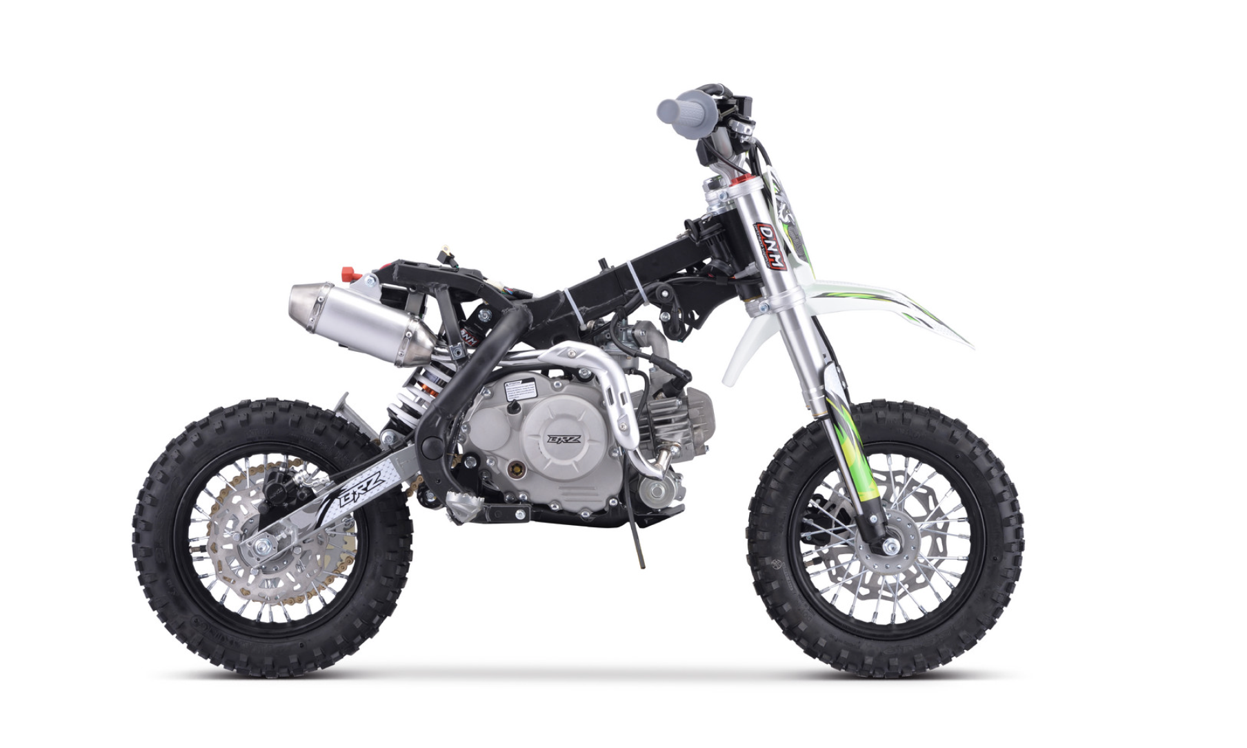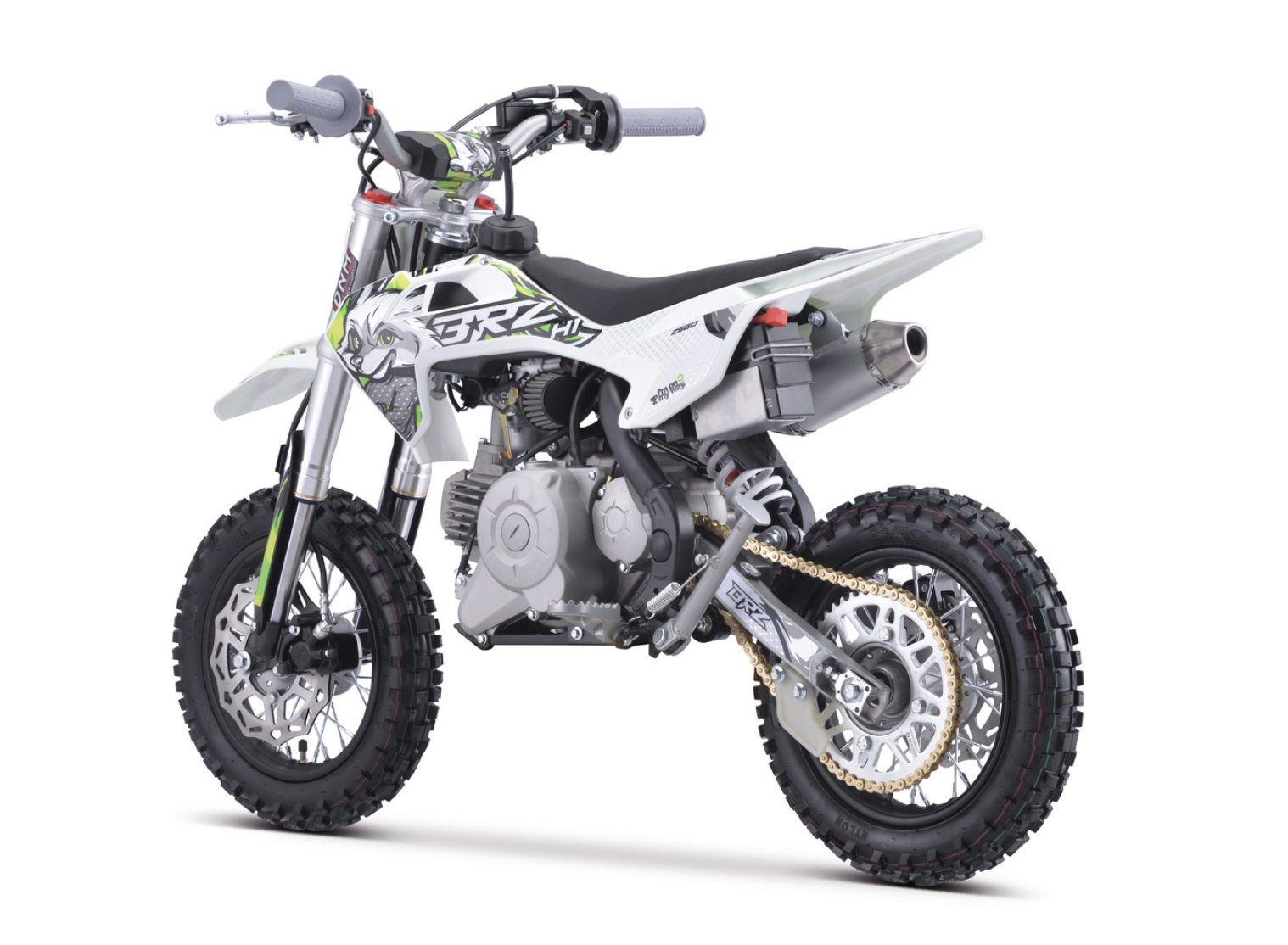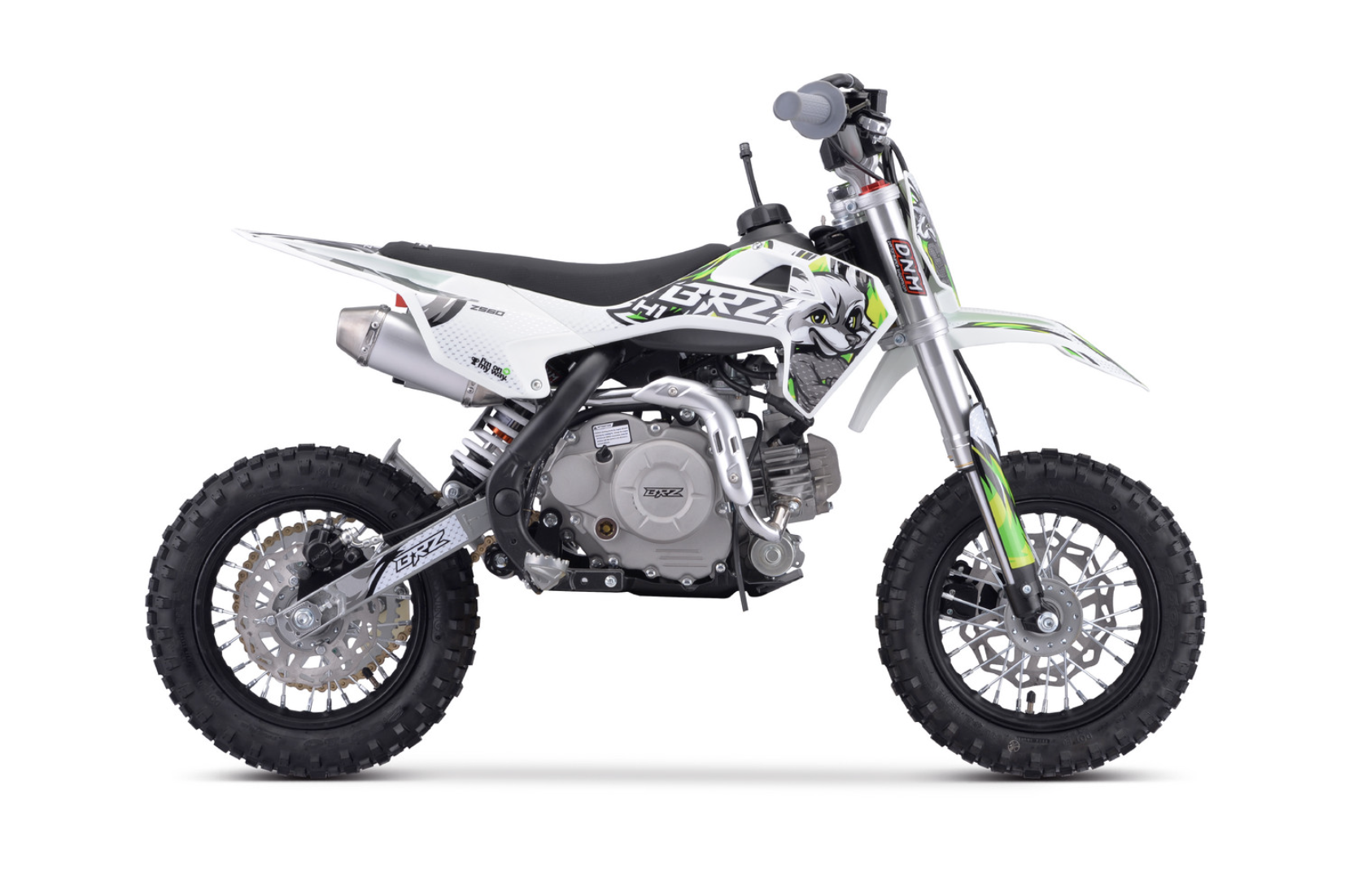 Питбайк BRZ H1 ZS60 10/10 - идеальный выбор для ребенка, который только начинает свой эндуро путь. Подходит для детей от 4 до 7 лет. Питбайк рассчитан на юных, пока ещё не опытных райдеров, потому на него установлена автоматическая коробка передач. BRZ H1 ZS60 10/10 легкий и надежный питбайк для вашего ребенка. Он оснащен четырехтактным мотором ZS60, в нем 60 см2. Также есть родительский контроль - вы можете ограничить ход открытия ручки газа. Для удобного запуска установлен электростартер. Если ищите питбайк для своего ребенка, то BRZ H1 ZS60 станет отличным приобретением, с помощью которого ваш ребенок получить первые азы на мотоцикле.