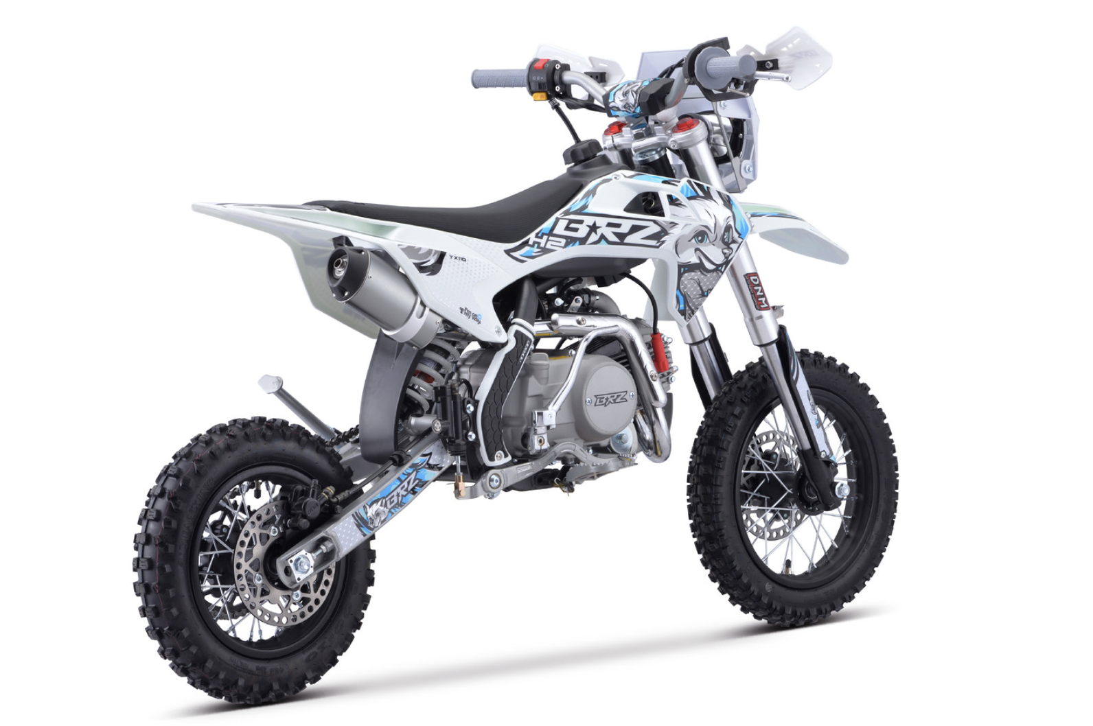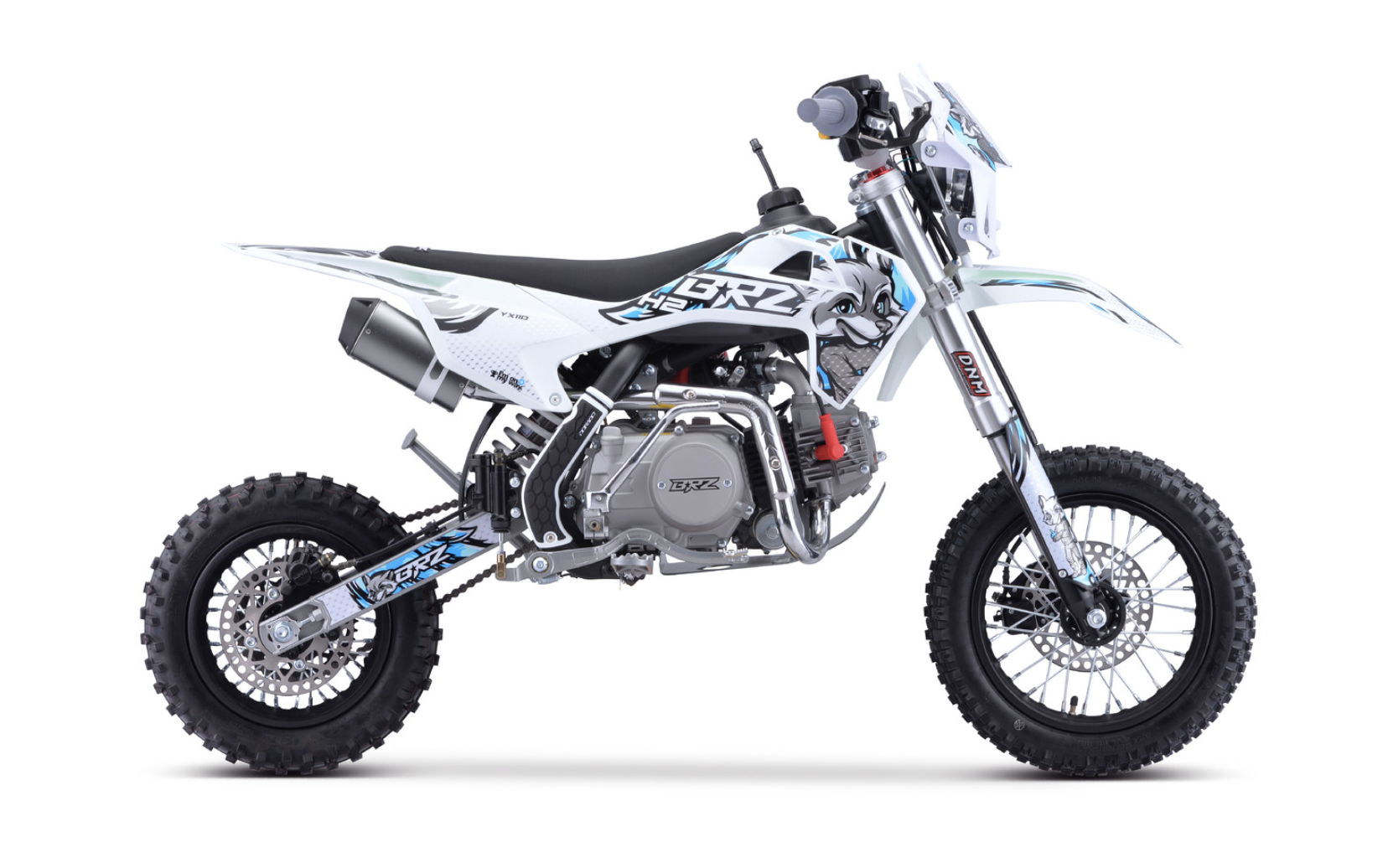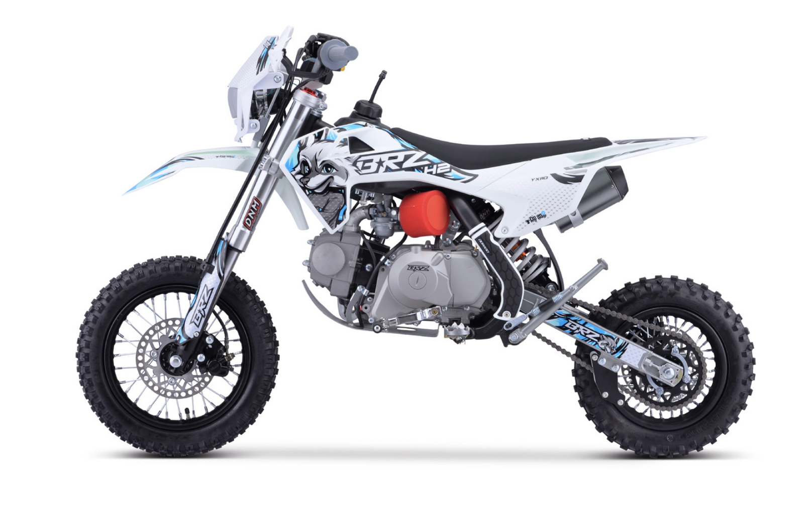 Питбайк BRZ H2 YX110 12/10 предназначен для детей и подростков от 8 до 12 лет. Питбайк имеет колесную размерность 12/10 и полу-автоматическую КПП, поэтому он отлично подойдет новичкам, кто ещё ни разу не сидел на мотике. BRZ H2 YX110 12/10 легкий и простой в управлении. Мотор на питбайке YX110 объемом 110 см3, что более чем достаточно для ребенка новичка. Также для удобства BRZ H2 YX110 12/10 оснащен электростартером и фарой. Если подбираете первый питбайк своему ребенку, то BRZ H2 YX110 12/10 станет надежным другом вашему ребенку.