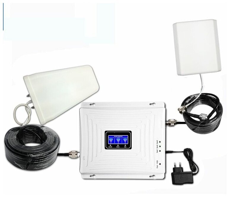 Усилитель сотовой связи и интернета — репитер LTE 4G/3G/2G для стабильного сигнала и высокой скорости мобильного интернета. Поддержка всех операторов и частот: LTE 800/1800/2600, 3G UMTS 2100, 2G GSM 900/1800. Улучшает качество голосовой связи и передачу данных в доме, офисе, магазине, на даче. Автоматическая регулировка усиления, защита от перегрузки, световая индикация. Простой монтаж: внешняя антенна, внутренняя антенна, кабель, блок питания в комплекте. Ключевые слова: усилитель сигнала, репитер 4G 3G 2G, усилитель LTE, репитер сотовой связи, мобильный интернет, улучшение связи в помещении.